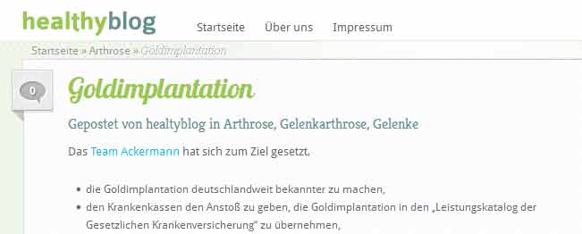 Online contribution no longer retrievable. Report on RTL about gold implantation for printing out